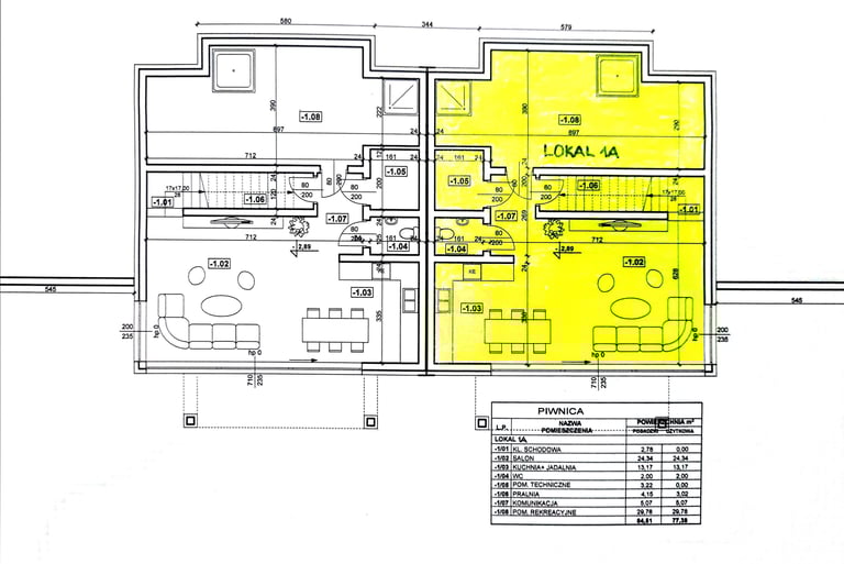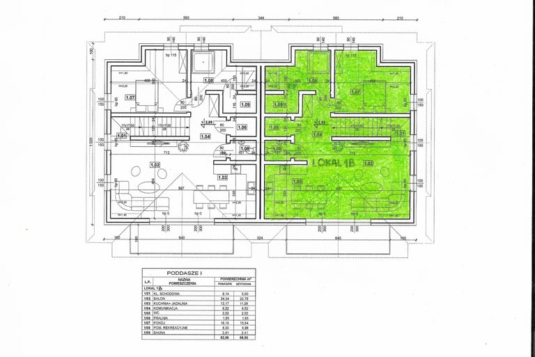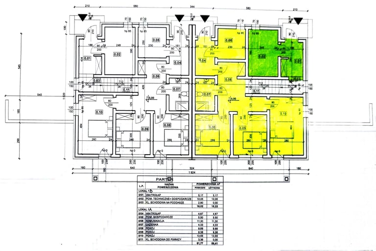 Rozkład pomieszczeń w poszczególnych apartamentach